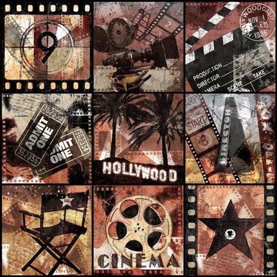 Affiche comme un Bloc d'Art 'Cinema Treasures' par Keith Mallett - Taille du produit fini 45 cm L x 45 cm H x 2.5 cm D
